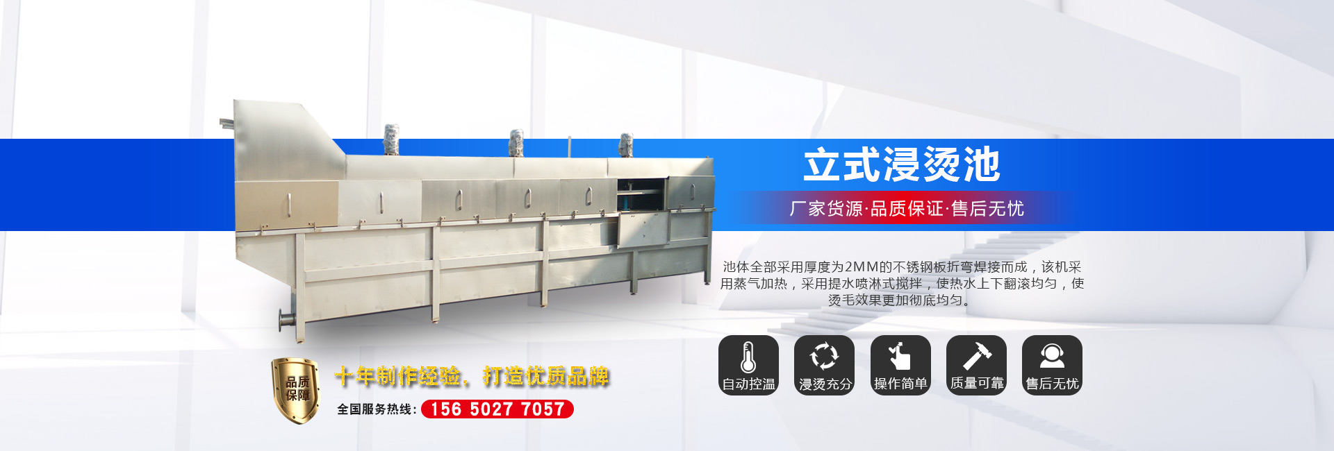 公司長(zhǎng)期與國內(nèi)外屠宰加工企業(yè)合作,走引進(jìn)——消化——?jiǎng)?chuàng)新和自主研發(fā)相結(jié)合的道路,在國內(nèi)外同類產(chǎn)品的基礎(chǔ)上,不斷更新和改造。公司主要設(shè)備有:A字型立式脫毛機(jī)、臥式脫毛機(jī)、強(qiáng)力噴淋機(jī)、松毛機(jī)、浸燙池、螺旋預(yù)冷機(jī)、禽籠清洗機(jī)、電暈機(jī)、兔扯皮機(jī)、兔割前爪/后爪機(jī)、剝胗機(jī)、自動(dòng)洗鉤機(jī)、螺旋燙爪機(jī)、雞爪脫皮機(jī)、分割輸送帶等屠宰用設(shè)備。其中,公司獨(dú)力發(fā)明生產(chǎn)設(shè)計(jì)的“電動(dòng)調(diào)節(jié)脫毛機(jī)”及“自動(dòng)控水控溫浸燙池”順利通過知識(shí)產(chǎn)權(quán)局的實(shí)質(zhì)性審查。公司所生產(chǎn)的設(shè)備 可與國外同類產(chǎn)品配套使用,設(shè)備遠(yuǎn)銷阿爾及利亞、澳大利亞等中東、非州等并建立了長(zhǎng)期穩(wěn)定的合作關(guān)系。