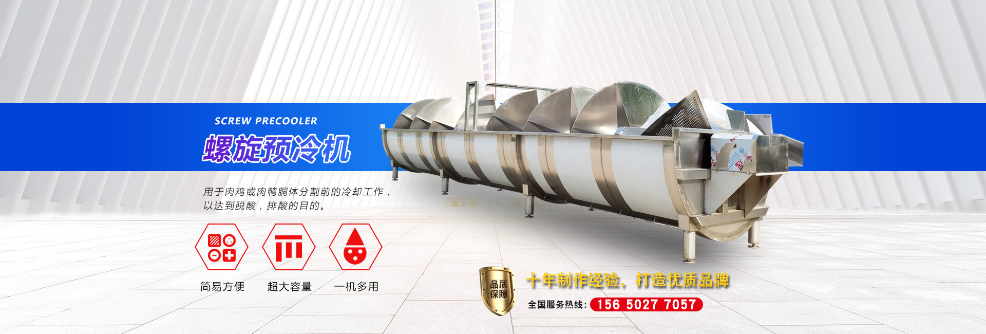 公司主要設(shè)備有:A字型立式脫毛機(jī)、臥式脫毛機(jī)、強(qiáng)力噴淋機(jī)、松毛機(jī)、浸燙池、螺旋預(yù)冷機(jī)、禽籠清洗機(jī)、電暈機(jī)、兔割前爪/后爪機(jī)、剝胗機(jī)、自動(dòng)洗鉤機(jī)、螺旋燙爪機(jī)、雞爪脫皮機(jī)、分割輸送帶等屠宰用設(shè)備。